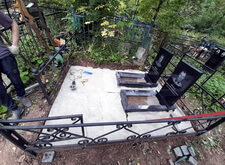 Когда памятники были готовы, мы приступили к работам на участке. В первую очередь мы очистили могилу от сорной травы, а затем вкрутили сваи, которые в дальнейшем будут опорами для памятников.